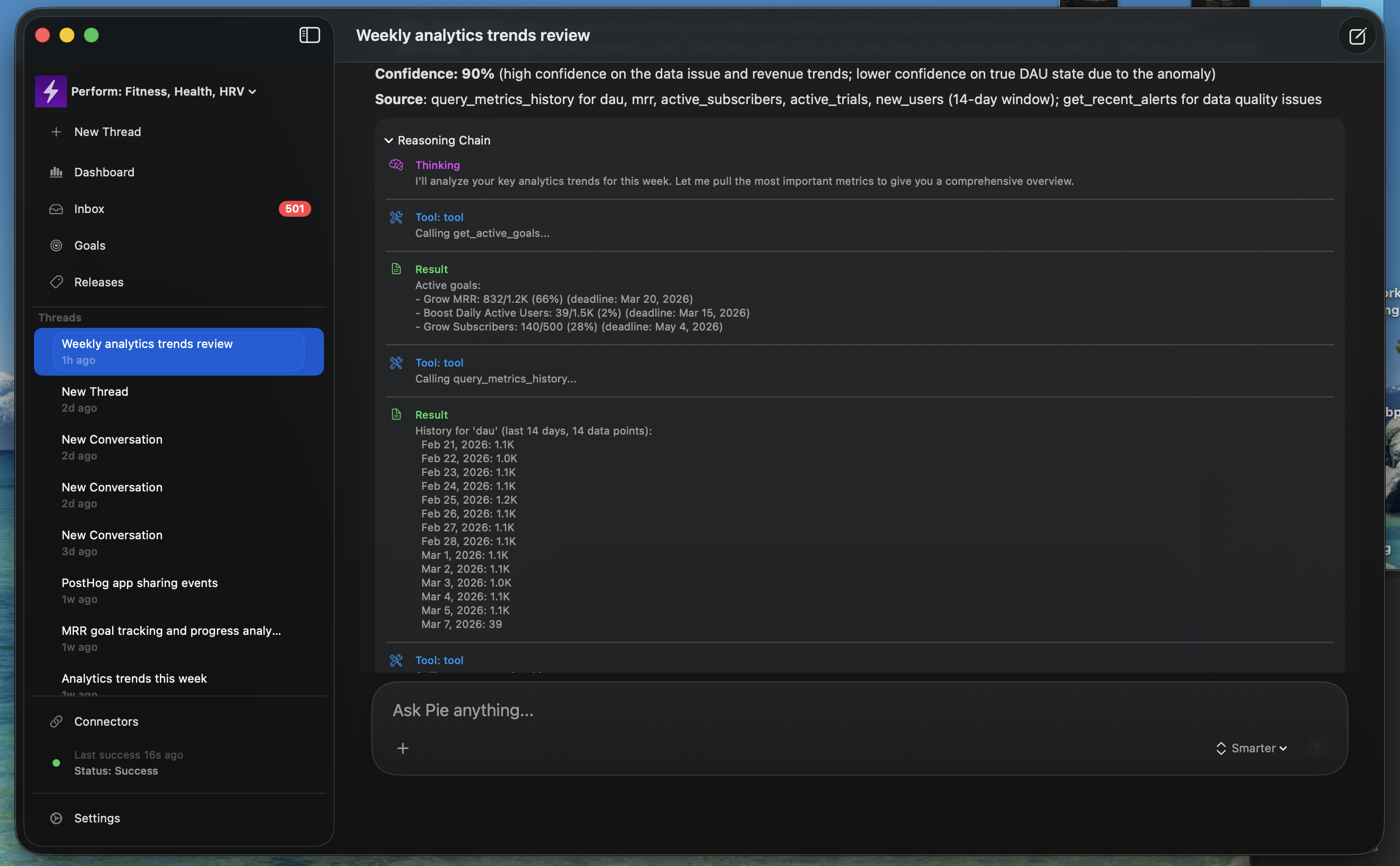 Developers set growth goals inside Pie, and the agent works toward them. It tracks progress against your targets, surfaces what's helping and what's hurting, and recommends specific next steps to keep you on track. Instead of digging through dashboards, you get a goal-aware agent that ties every insight back to what you're actually trying to achieve.